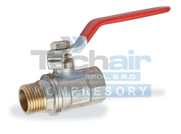 Kulový ventil s vnitřním závitem 1 ¼" a vnějším závitem 1 ¼". Tělo z poniklované mosazi, kulička z tvrdě pochromované mosazi a teflonové těsnění kuličky.