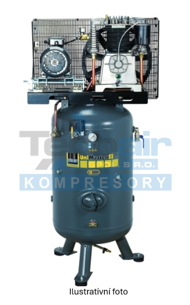 Pístové kompresory UniMaster jsou silné a robustní a jsou optimálním řešením, když nepotřebujete vzduch trvale - např. v malém autoservisu. Kompresory řady UniMaster STS jsou vybaveny dvoustupňovým 2-válcovým agregátem poháněným klínovým řemenem, mezichladičem i dochlazovačem. Vzdušník je vyroben dle normy AD2000 a díky vnitřní povrchové úpravě na něj výrobce poskytuje 15letou záruku proti prorezavění. Tyto kompresory vynikají spolehlivostí, úsporným vertikálním provedením a možností snadného rozšíření dle konkrétních požadavků. Díky umístění vzdušníku nastojato šetří místo a skvěle se hodí i do menších provozů.