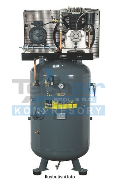 Pístové kompresory UniMaster jsou silné a robustní a jsou optimálním řešením, když nepotřebujete vzduch trvale - např. v malém autoservisu. Kompresory řady UniMaster STS jsou vybaveny dvoustupňovým 2-válcovým agregátem poháněným klínovým řemenem, mezichladičem i dochlazovačem. Vzdušník je vyroben dle normy AD2000 a díky vnitřní povrchové úpravě na něj výrobce poskytuje 15letou záruku proti prorezavění. Tyto kompresory vynikají spolehlivostí, úsporným vertikálním provedením a možností snadného rozšíření dle konkrétních požadavků. Díky umístění vzdušníku nastojato šetří místo a skvěle se hodí i do menších provozů.